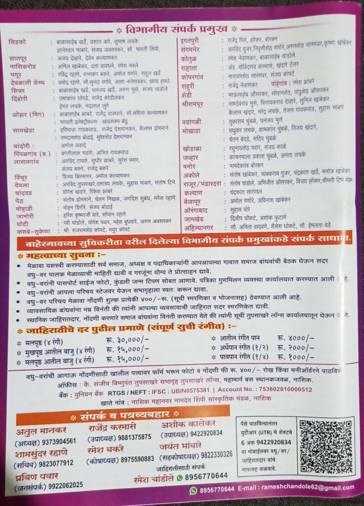 वधू वर मेळावा परिचय पत्रक